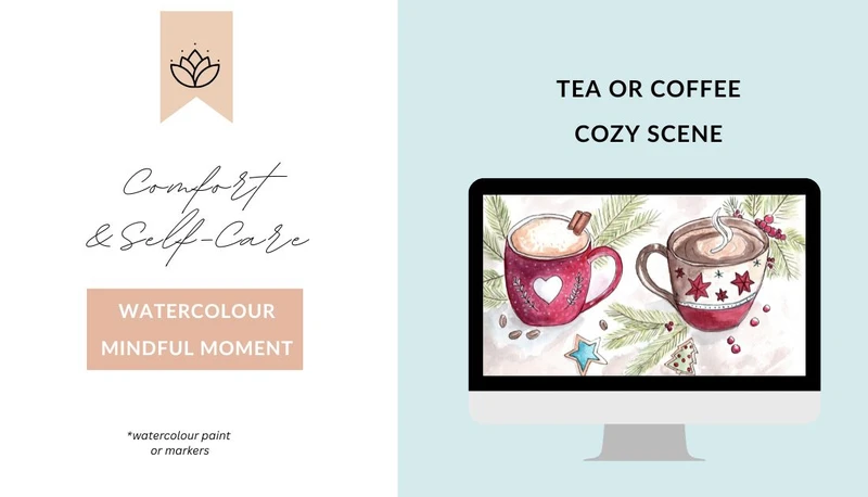 Self-Care & Comfort - Watercolour Mindful Moment: Tea/Coffee Cozy Scene